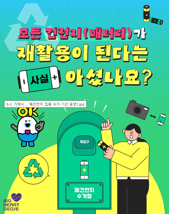 [뉴스다컴] 최근 배터리로 인한 화재와 폭발 사고가 증가하고 있는 가운데, 거제시는 폐건전지를 안전하게 수거하고 폐건전지 수거율을 높이기 위해 오는 11월3일부터 11월 28일까지 한 달 동안 폐건전지 집중 수거 기간을 운영한다고 밝혔다.