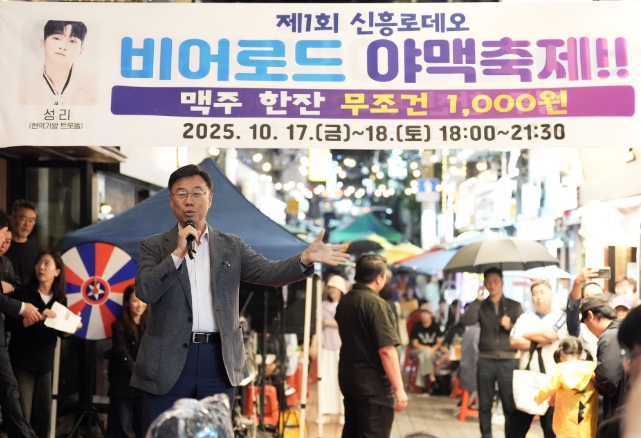 [뉴스다컴] 신상진 성남시장은 17일 저녁 신흥로데오거리 종합시장 먹자골목에서 열린 ‘제1회 신흥로데오 비어로드 야맥축제’ 개막식에 참석해 관계자들을 격려하고 시민들과 소통했다.