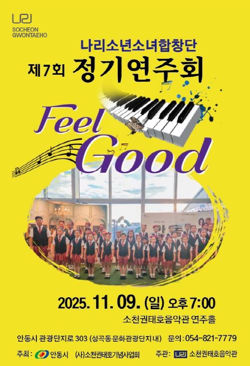 [뉴스다컴] (사)소천권태호선생기념사업회가 주최․주관하는 ‘제7회 나리소년소녀합창단 정기연주회’가 11월 9일 오후 7시, 소천권태호음악관 실내 연주홀에서 개최된다.