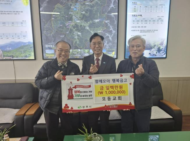 [뉴스다컴] 상주시 모동면소재 모동교회는 1월 2일 관내 어려운 이웃을 돕기 위해 ‘함께모아 행복금고’에 성금 100만원을 전달하며 새해 첫 나눔의 시작을 알렸다.