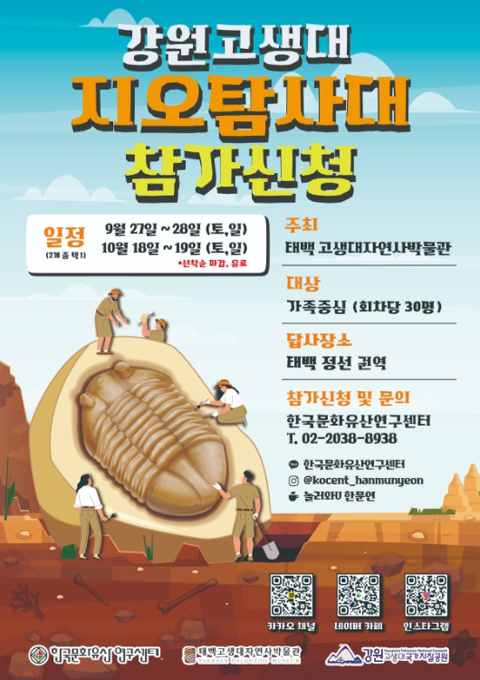 [뉴스다컴] 태백시은 고생대자연사박물관에서 강원고생대 국가지질공원(태백·정선 권역)을 활용한 1박 2일 답사형 지질탐사 프로그램 '강원고생대 지오탐사대'를 운영한다고 밝혔다.