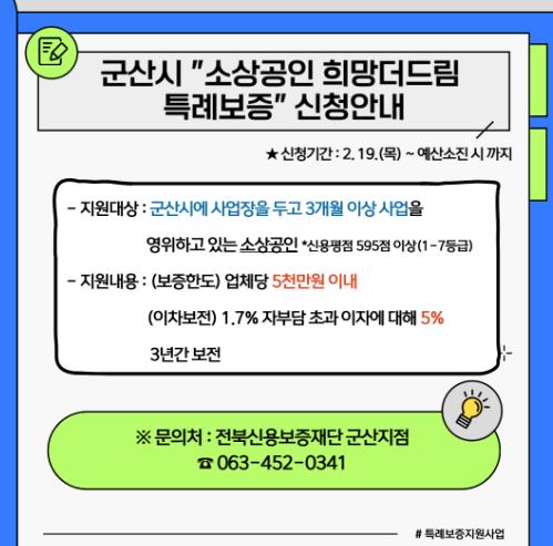 | ▲ 군산시, ‘소상공인 희망더드림 특례보증’ 시행 |