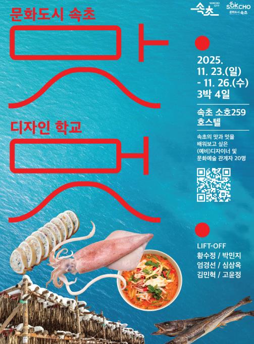 재단 관계자는 “속초의 정체성을 디자인 언어로 새롭게 표현해보는 실험적 프로젝트가 될 것”이라며 “참여자들이 지역의 맛과 멋을 깊이 경험하고, 그 감각을 창의적 결과물로 발전시켜주길 기대한다”고 말했다.