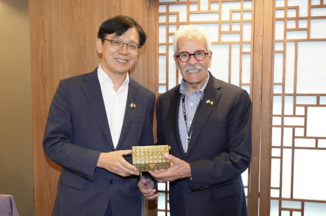 ▲ 현근택 수원시 제2부시장(왼쪽)과 루이스 곤잘레스 아레날 멕시코 학습도시연맹 사무총장이 함께하고 있다. |