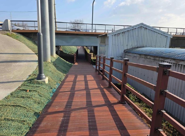 [뉴스다컴] 동해시는 국도7호선으로 인해 단절돼 있던 전천 제방길(북삼동 방향)을 하천제방과 전천교 하부공간을 활용해 보행자를 전용 데크로드 연결을 완료했다고 19일 밝혔다.