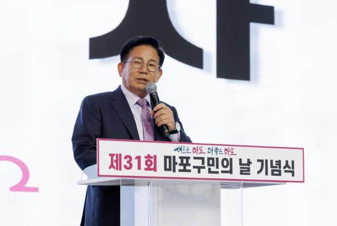 ▲ 지난해 마포구민의 날에 기념사를 하고 있는 박강수 마포구청장 |
