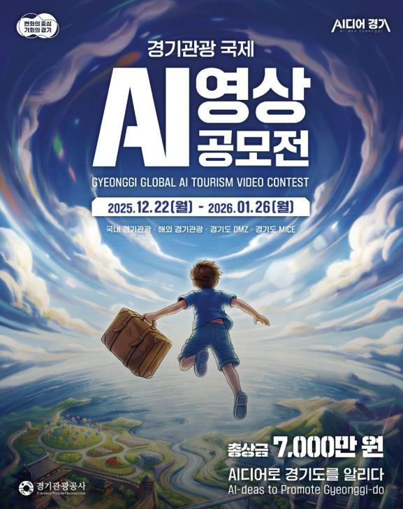 [뉴스다컴] 경기관광공사는 생성형 인공지능(AI) 기술을 활용해 경기도의 다채로운 매력을 전 세계에 알리기 위한 ‘경기관광 국제 AI 영상 공모전’을 개최한다고 23일 밝혔다.