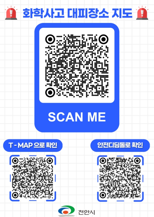 [뉴스다컴] 천안시는 ‘화학사고 대피장소 안내지도’를 5개 국어 리플렛과 QR안내판, 포스터 등 다양한 형식으로 제작해 배포했다고 26일 밝혔다.