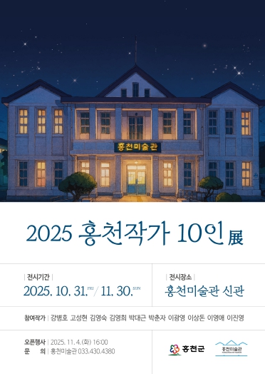 [뉴스다컴] 홍천군은 지역 예술인의 창작활동을 지원하고 예술 교류의 장을 마련하기 위해 '2025 홍천작가 10인전'을 개최한다고 밝혔다.