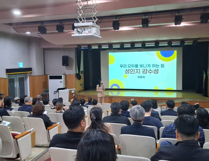 교육을 맡은 양동옥 강사(한국젠더문화연구원 원장)는 “우리 모두를 빛나게 하는 힘-성인지감수성”이라는 주제로 조직의 언어, 조직의 회식문화, 동의의 온도 점검, 폭력예방을 위한 역할 등에 대해 생각해 보는 시간을 가지며 강의를 진행했다.