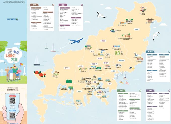 ‘가족과 함께하는 부산 나들이 지도’는 영유아 자녀와 함께 방문하기 좋은 부산의 나들이 장소를 지역별, 분야별(자연, 체험, 문화 등)로 소개한 자료로 가정에서 활용하기 쉽도록 지도 형태로 제작됐다.
