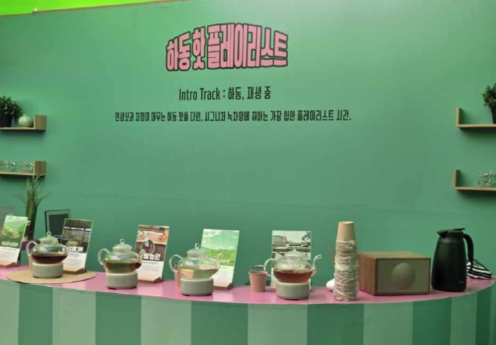 행사장에는 하동의 관광지, 다원, 카페, 로컬스토어 등 60개의 명소를 소개하는 전시존과 포토존이 마련됐다. 이를 통해 관람객들은 다양한 프로그램을 직접 체험하고, 자신만의 하동 여행 플레이리스트를 완성했다.