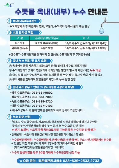 [뉴스다컴] 속초시가 ‘수돗물 누수 안내문’을 제작·배포하며 생활 속 물 절약 실천 확산에 나섰다.