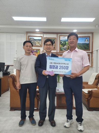 이번 기증은 영동에서 개최되는 세계적 문화 축제인 ‘2025 영동세계국악엑스포’의 의미를 널리 알리고, 지역 학생들이 국악의 아름다움을 직접 체험할 수 있는 기회를 제공하고자 마련됐다. 기증된 입장권은 영동 관내 초·중·고등학교 학생들에게 전달되어 다양한 문화 체험 활동에 활용될 예정이다.