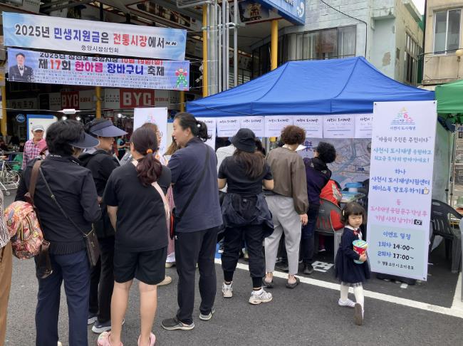 [뉴스다컴] 사천시 도시재생지원센터는 지난 19일 삼천포 중앙시장 주차장 일원에서 열린 ‘제17회 삼천포 중앙시장 한아름 장바구니 축제’에 참여해, 지역특화재생 팔포팔락 업타운 조성 등 주요 도시재생사업을 홍보하는 부스를 운영하며 지역 주민들의 높은 관심을 받았다.