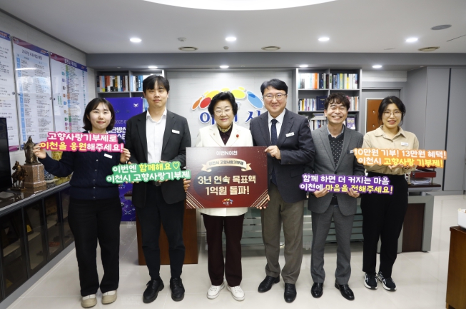 이천시 관계자는 “3년 연속 1억 원 모금 달성은 전국에서 이천시를 응원해 주신 기부자 한 분 한 분의 정성이 모여 이뤄낸 결과”라며, “앞으로도 기부자의 마음이 지역 상생 발전으로 이어질 수 있도록 답례품과 기금사업을 더욱 내실 있게 운영해 나가겠다”라고 말했다.