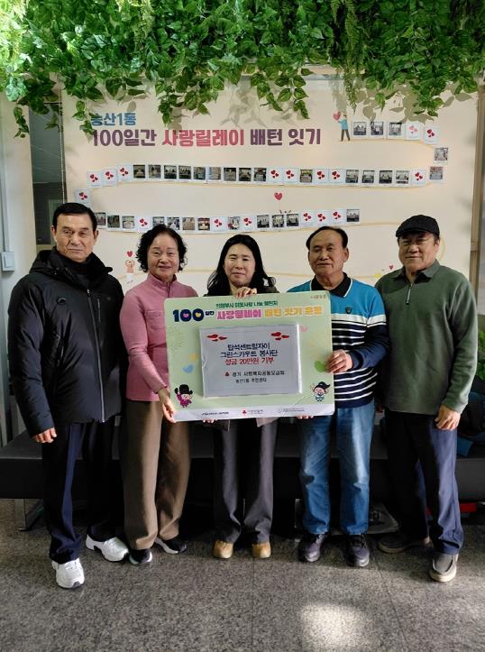 전선녀 동장은 “100일간 사랑릴레이에 동참해 주신 탑석자이그린스카우트 봉사단에 감사드린다”며 “후원해 주신 성금은 도움이 필요한 이웃들을 위해 소중히 사용하겠다”고 말했다.