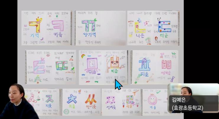 | ▲ 김예은 효광초 교사가 28일 온라인을 통해 일본 오사카 소재 한글학교 교사들에게 한국어 지도법을 설명하고 있다. |