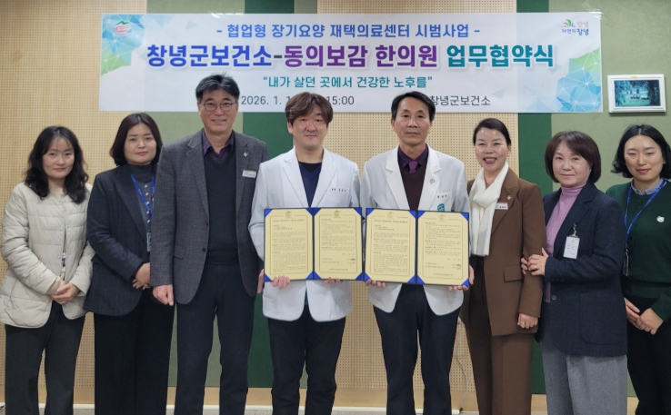 [뉴스다컴] 창녕군은 지난 14일 동의보감 한의원과 장기요양 재택의료센터 시범사업 운영을 위한 업무협약(MOU)을 체결하고, 지역 내 의료 취약계층을 대상으로 한 재택의료 서비스를 본격 추진한다고 밝혔다.