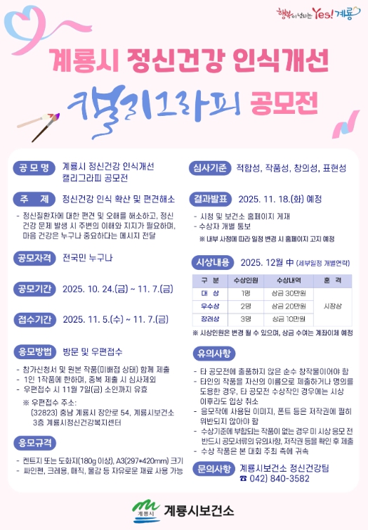 계룡시, ‘정신건강 인식개선 캘리그라피 공모전’ 개최