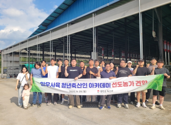 [뉴스다컴] 합천군은 29일 월요일, ‘한우사육 청년축산인 아카데미’의 일환으로 한우사육 청년축산인 20여 명이 참여한 가운데 관외 선도농가 견학을 실시했다.