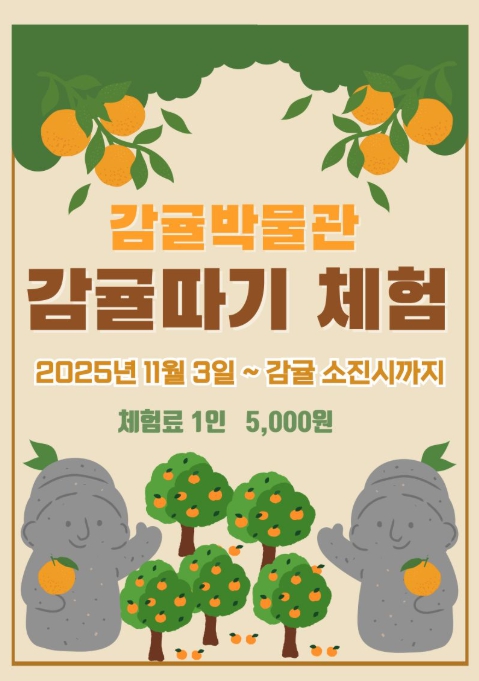 [뉴스다컴] 서귀포시 감귤박물관에서는 11월 3일부터 12월 30일까지 ‘2025년 감귤따기체험’ 행사를 본격 운영한다고 밝혔다.