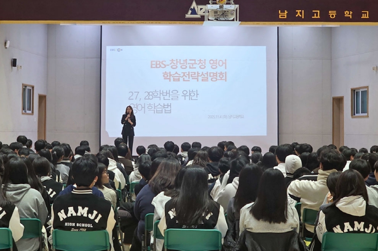 [뉴스다컴] 창녕군은 지난 4일 남지고등학교에서 1~2학년 학생 240명을 대상으로 ‘EBS 대표강사 초청 학교로 찾아가는 학습전략 설명회’를 개최했다. 이로써 군은 올해 계획된 EBS 대표강사 초청 학습전략 설명회를 모두 성공적으로 마무리했다.