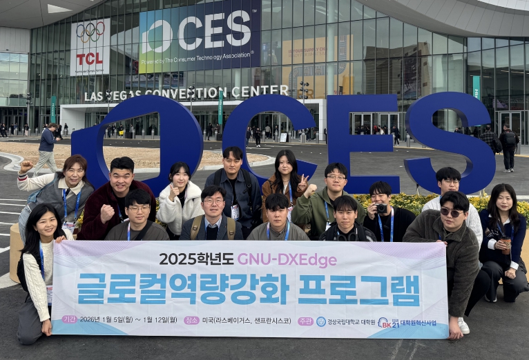 [뉴스다컴] 경상국립대학교 대학원은 대학원생들의 글로컬 역량을 강화해 주기 위해 미국 라스베이거스에서 열리는 ‘2026년 세계 가전 전시회(CES, Consumer Electronics Show)’를 참관하고, 미국 명문대학과 글로벌 기업을 방문하는 해외 탐방 프로그램을 실시했다.