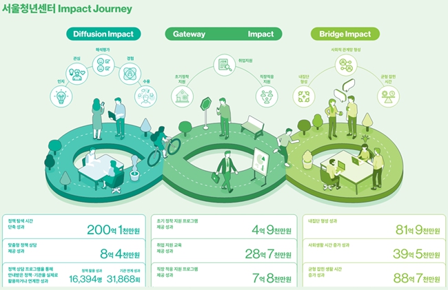 이번 측정은 임팩트 평가 전문 연구기관(임팩트리서치랩)이 2024년 1월~2025년 9월 서울청년센터 사업 결과를 바탕으로 센터 담당자 심층 인터뷰, 센터 이용 경험이 있는 청년 1,404명을 대상으로 한 인터뷰·설문조사 등을 면밀히 분석한 결과다.