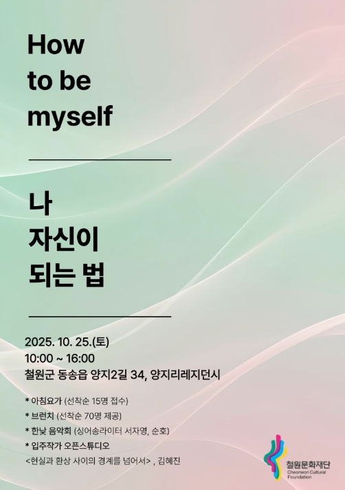 [뉴스다컴] 철원문화재단은 2025년 10월 25일 오전 10시부터 16시까지 양지리 레지던시를 개방해 웰니스 문화행사를 진행한다.
