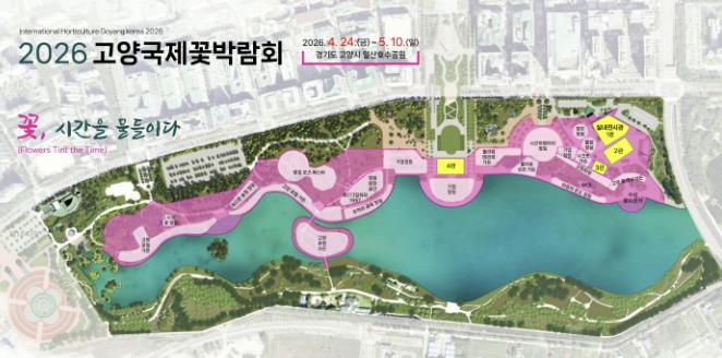 [뉴스다컴] 올해 18회를 맞는 화훼 전문 국제박람회 ‘2026고양국제꽃박람회’가 개막 100일을 앞두고 윤곽을 나타냈다. 이번 박람회는 ‘꽃, 시간을 물들이다’를 주제로 4월 24일부터 5월 10일까지 17일간 일산호수공원 일원에서 열린다.