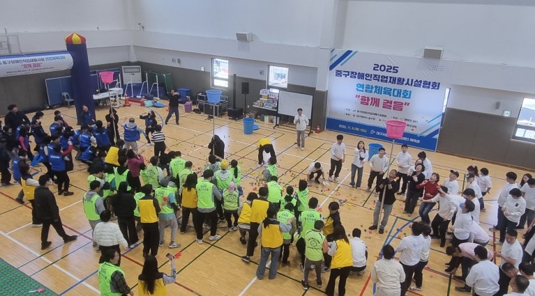 [뉴스다컴] 대구 중구는 지난 6일 대구서문교회 비전센터 체육관에서 장애인직업재활시설 이용자, 종사자, 보호자 등 200여 명이 함께한 ‘연합 체육대회’를 성황리에 개최했다.