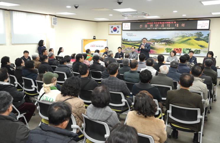 이번 방문은 신풍면 행정복지센터 등에서 진행됐으며, 이장과 새마을회, 주민자치회, 기관·단체장, 주민 등 100여 명이 참석했다.