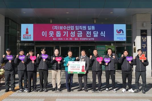 [뉴스다컴] (자)보수산업은 지난 1월 22일, 부산 남구청을 방문해 직원들이 십시일반 정성을 모아 마련한 성금 500만 원을 기부했다고 밝혔다.