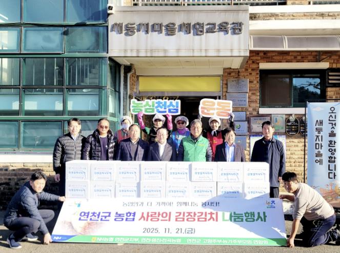 [뉴스다컴] NH농협 연천군지부는 연천군 관내 임진농협, 연천농협, 전곡농협과 21일 백학면 새둥지마을에서 사랑의 김장김치 나눔행사를 가졌다고 밝혔다.