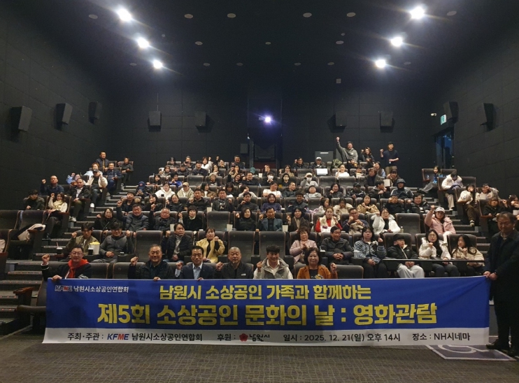 [뉴스다컴] 남원시소상공인연합회(회장 강상남)는 지난 21일 NH시네마에서 소상공인과 가족들을 초청해 영화 관람 행사를 열고 ‘소상공인 문화의 날’을 기념했다.
