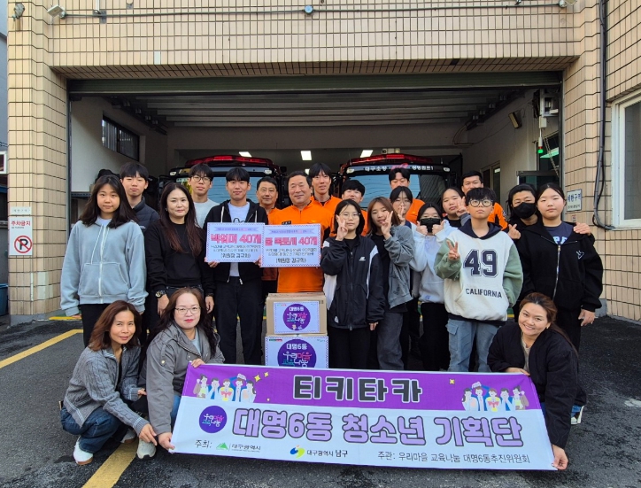 [뉴스다컴] 대구 남구 대명6동은 마을 청소년들이 지난 여름방학 동안 '1일 사장님' 프로그램을 통해 얻은 수익금으로 방한용 넥워머 40개와 여름용 쿨 넥워머 40개를 소방서에 기부하며, 소방의 날을 맞아 소방관들에게 감사와 응원의 마음을 전달했다고 밝혔다.