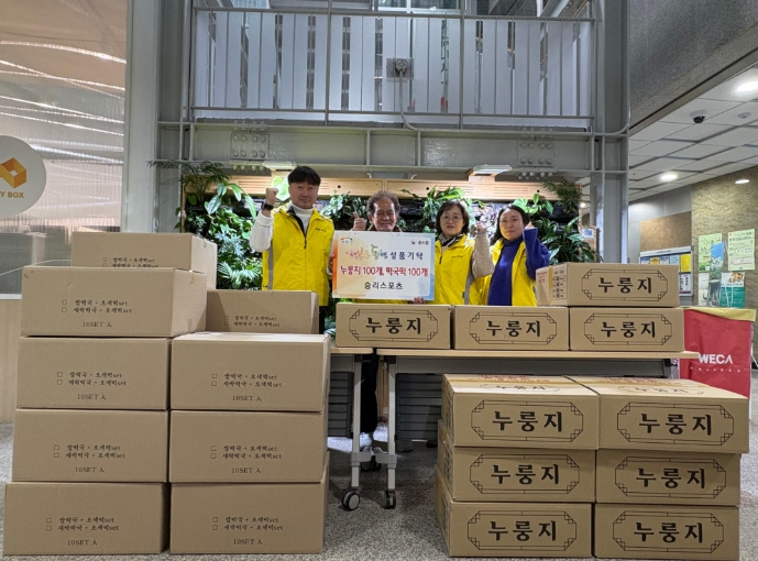 [뉴스다컴] 이천시 중리동행정복지센터는 지난 1월 14일, 승리스포츠가 관내 취약계층을 위해 누룽지 100개와 떡국떡 100개를 기탁했다고 밝혔다.