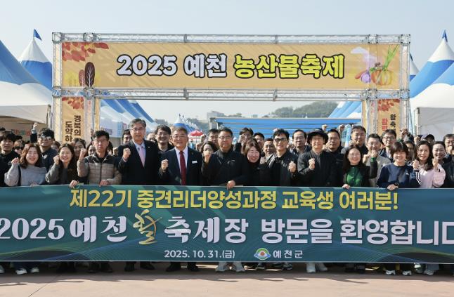 [뉴스다컴] 예천군은 31일, 경상북도 인재개발원 제22기 중견리더양성과정 교육생 113명이 한천체육공원을 찾아 ‘2025 예천활축제·농산물축제’를 둘러보고 주요 프로그램을 체험했다고 밝혔다.