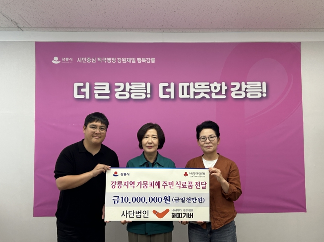 이번 후원은 기록적인 가뭄으로 어려움을 겪는 강릉지역주민들을 돕기 위해 기획됐다. (사)해피기버는 컵밥, 사골곰탕, 미역국 등 6종의 식품을 마련했으며, 이는 강릉시를 통해 각 취약계층 가정에 전달될 예정이다.