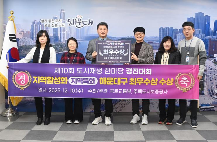 [뉴스다컴] 해운대구가 국토교통부 주최 ‘제10회 도시재생 한마당 경진대회’에서 지역활성화 우수사례 지역특화 분야 최우수상을 받았다.