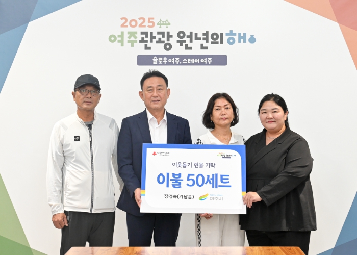 [뉴스다컴] 지난 19일 장경숙(가남읍 주민)님은 여주시청을 방문하여 여주시 저소득층을 돕기 위한 후원품으로 이불 50세트(175만원 상당)를 기탁했다.