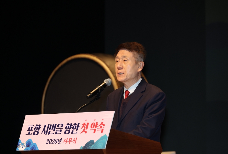 이강덕 포항시장은 신년사에서 “위기 속에서 기회를 찾고 성과를 만들어온 ‘포항 모델’은 분명한 선도 사례”라며 “포항의 변화와 성장은 현장에서 묵묵히 책임을 다하는 공직자 여러분의 손에서 시작된다”고 말했다.