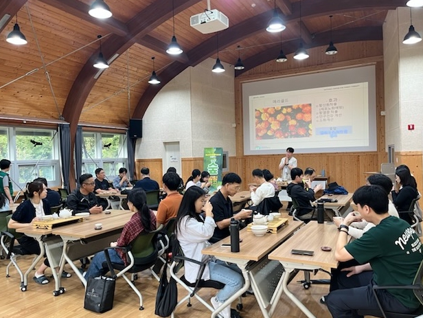 참가자들은 가을이 깊어지는 숲속에서 산림치유지도사와 함께 숲길 걷기, 자연물을 활용한 조별 활동, 싱잉볼 명상, 꽃차 테라피 등 다채로운 쉼 프로그램을 체험하며 긴장을 풀고 안정을 되찾았다.