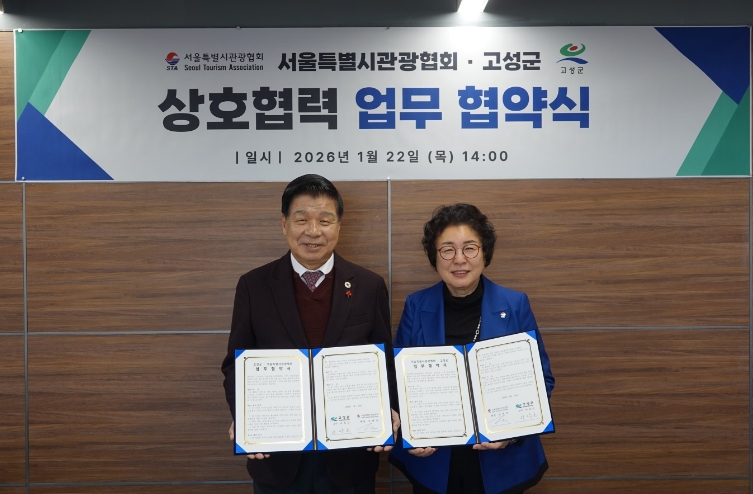 [뉴스다컴] 경남 고성군은 1월 22일 서울특별시관광협회 회의실에서 서울특별시관광협회(회장 조태숙)와 지역 관광 활성화 및 관광산업 발전을 위한 업무협약(MOU)을 체결했다고 밝혔다.