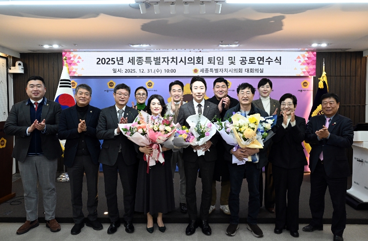[뉴스다컴] 세종특별자치시의회는 31일 시의회 대회의실에서 퇴임 및 공로연수를 맞는 공직자들의 노고에 감사의 마음을 전하는 2025년 세종시의회 퇴임 및 공로연수식을 개최했다.