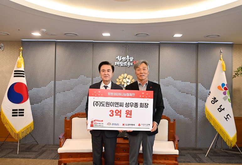 [뉴스다컴] 충남도는 31일 ㈜도원이엔씨로부터 이웃사랑 성금 3억원을 전달받았다고 밝혔다.
