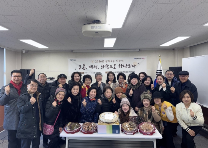 [뉴스다컴] 고양특례시 덕양구 성사2동 주민자치회는 2026년 병오년 새해를 맞아 지난 2일, 행정복지센터 대회의실에서 ‘소통, 배려, 화합으로 하나 되다.’를 표어를 내걸고 시무식을 개최하며 힘찬 출발을 알렸다.