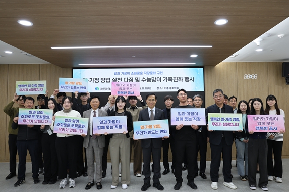 [뉴스다컴] 광주도시공사는 11일 ‘일·가정 양립 실천 다짐 행사’를 열어 직원이 행복하고 기업이 함께 성장하는 직장문화를 확산하겠다고 밝혔다.