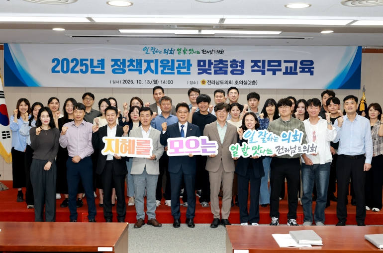 [뉴스다컴] 전라남도의회는 10월 13일, 도의회 초의실에서 소속 정책지원관과 직원을 대상으로 ‘맞춤형 직무교육’을 실시했다.